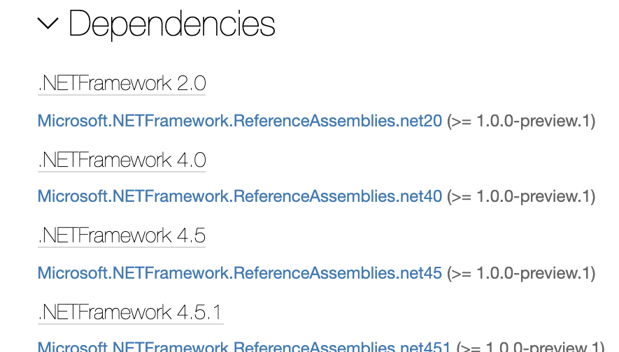 As you can see from the screenshot above, the metapackage references all the .NET Framework TFMs (Target Framework Moniker), you wouldn't want to download all of these at build time when you only need one.