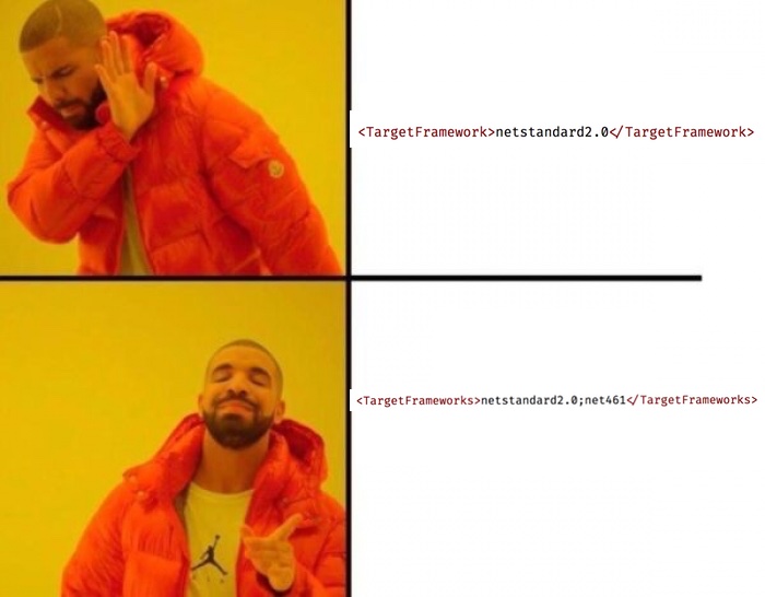 Because of all of the issues that I faced, and from other developers stories, the guidance I was giving people last year was to target both netstandard2.0 and net461 at the first sign of trouble if they were really keen on having just one target, or to target both from the beginning for a happy and peaceful life.